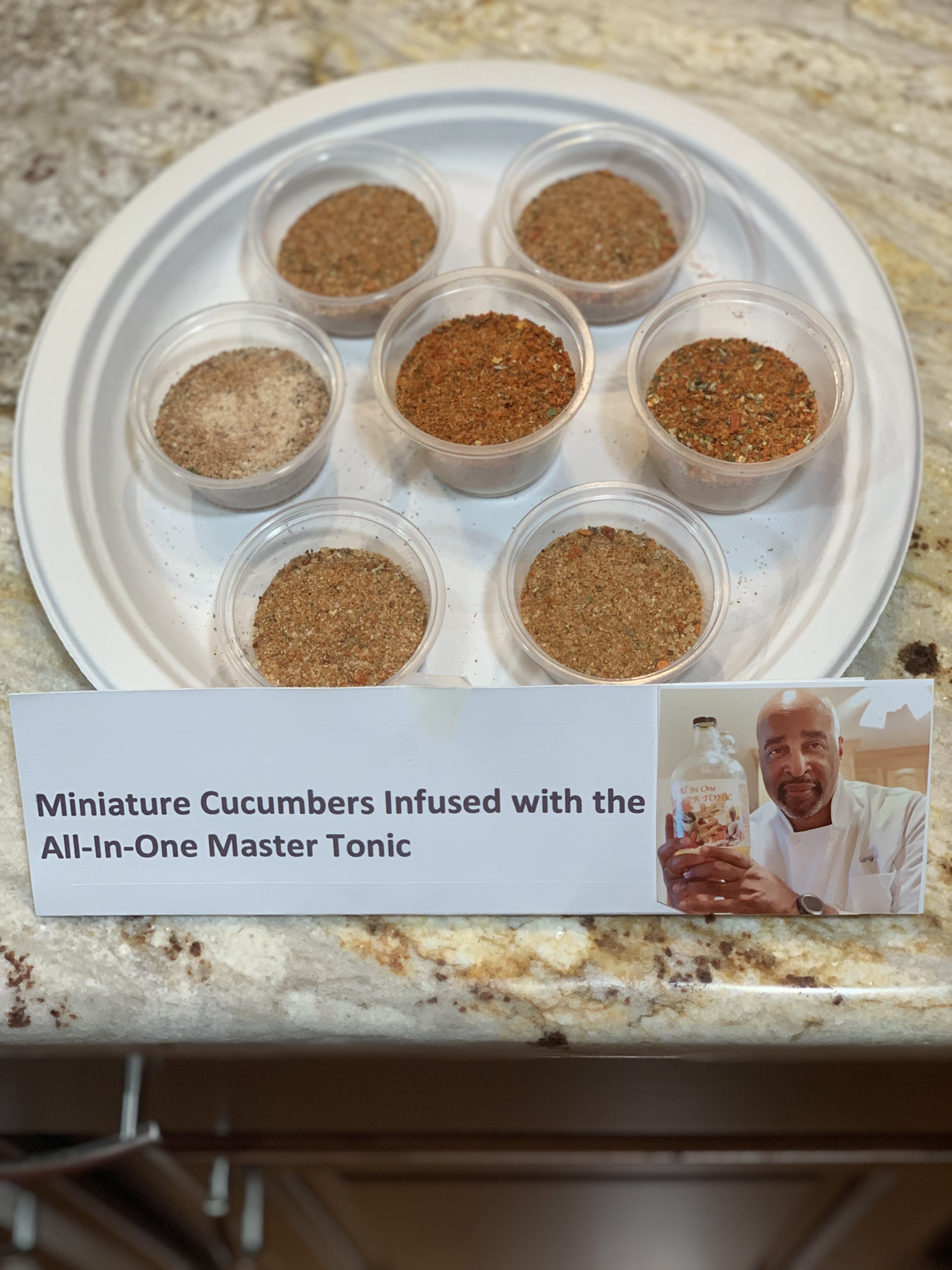 MasterChef Note: For additional flavor, drizzle your favorite vinaigrette or salad dressing over cucumbers. Sprinkle additional seasoning mix to taste. Bon appetite! You can repeat this recipe 3 times. You may need to add additional spice mix and tonic, as the cucumbers absorb the spice/tonic mix. After using 3-4 times, you can use the spice/tonic mix as a marinade for meats or a vinaigrette for salads.